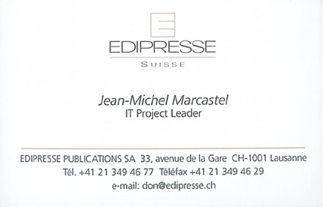 Edipresse Publications is a mid-size press and publications group with activities in a dozen countries and sound financial backing. I joined the company to live the exciting and demanding mutation of the press industry from a still old-fashioned organization to encompass new technologies for the automation of prepress and printing plants. The ever increasing focus on Internet technologies and the rethinking of business workflows to be both print and web-centric, with its pros and cons, provided me with a hands-on experience both from a technical and strategic standpoint on all hype technologies which have progressively be introduced and rolled out since the Internet boom in the mid 1990s.